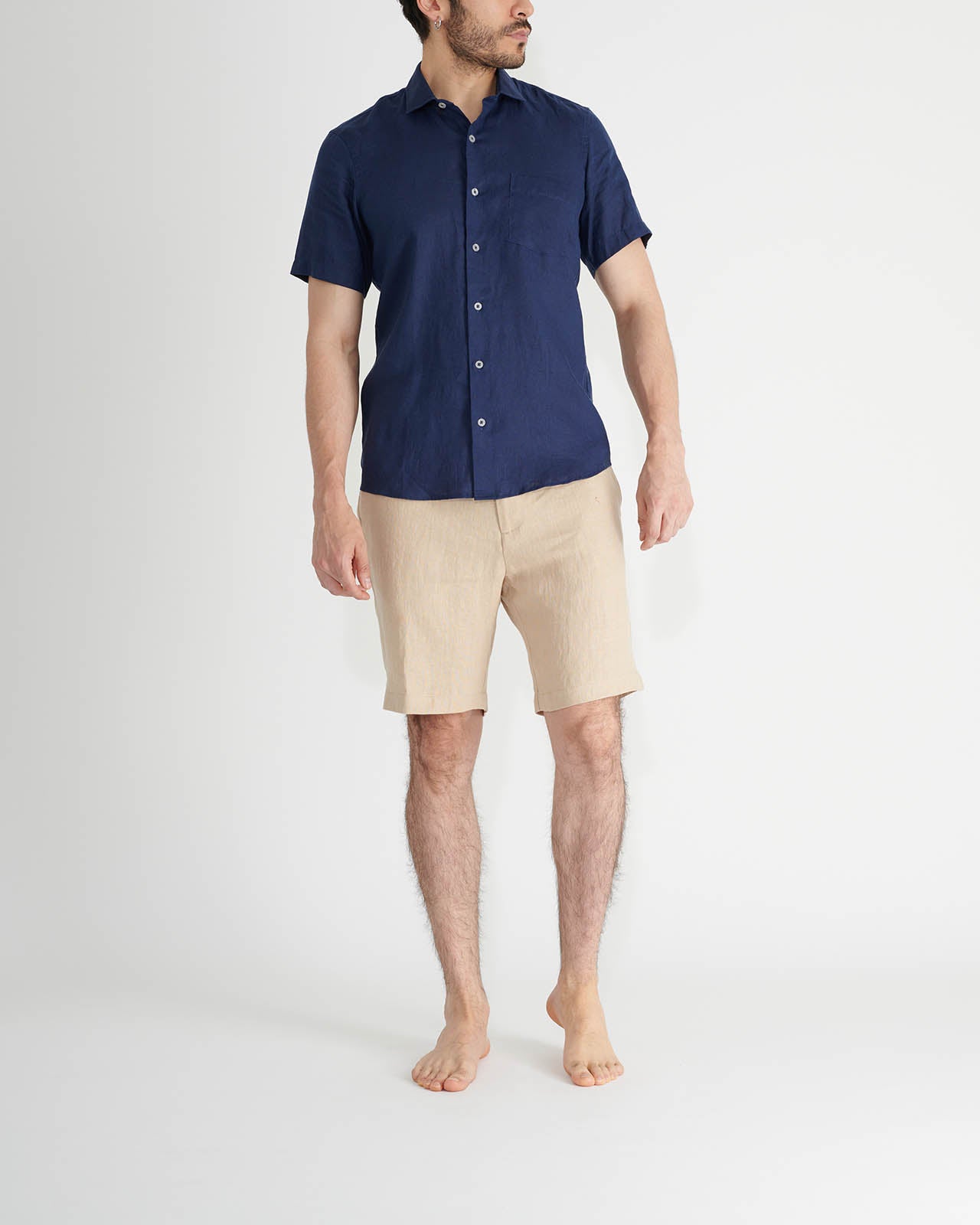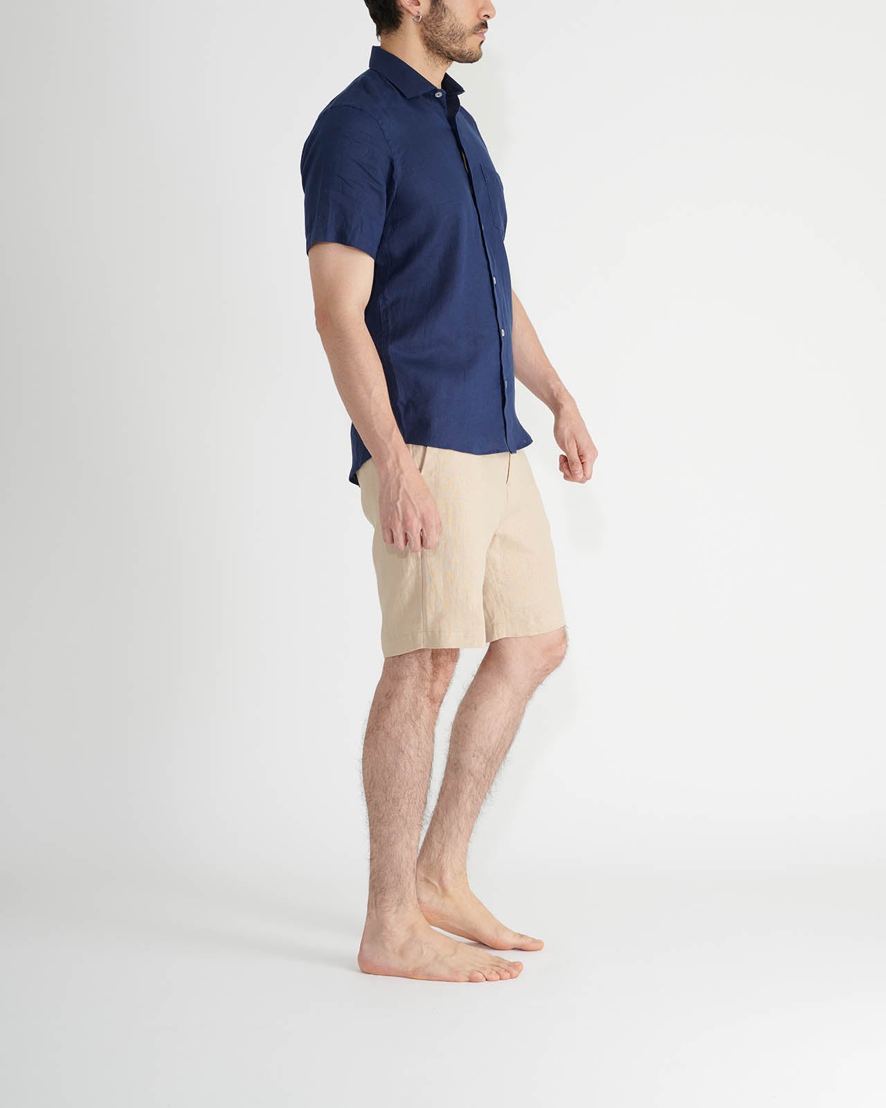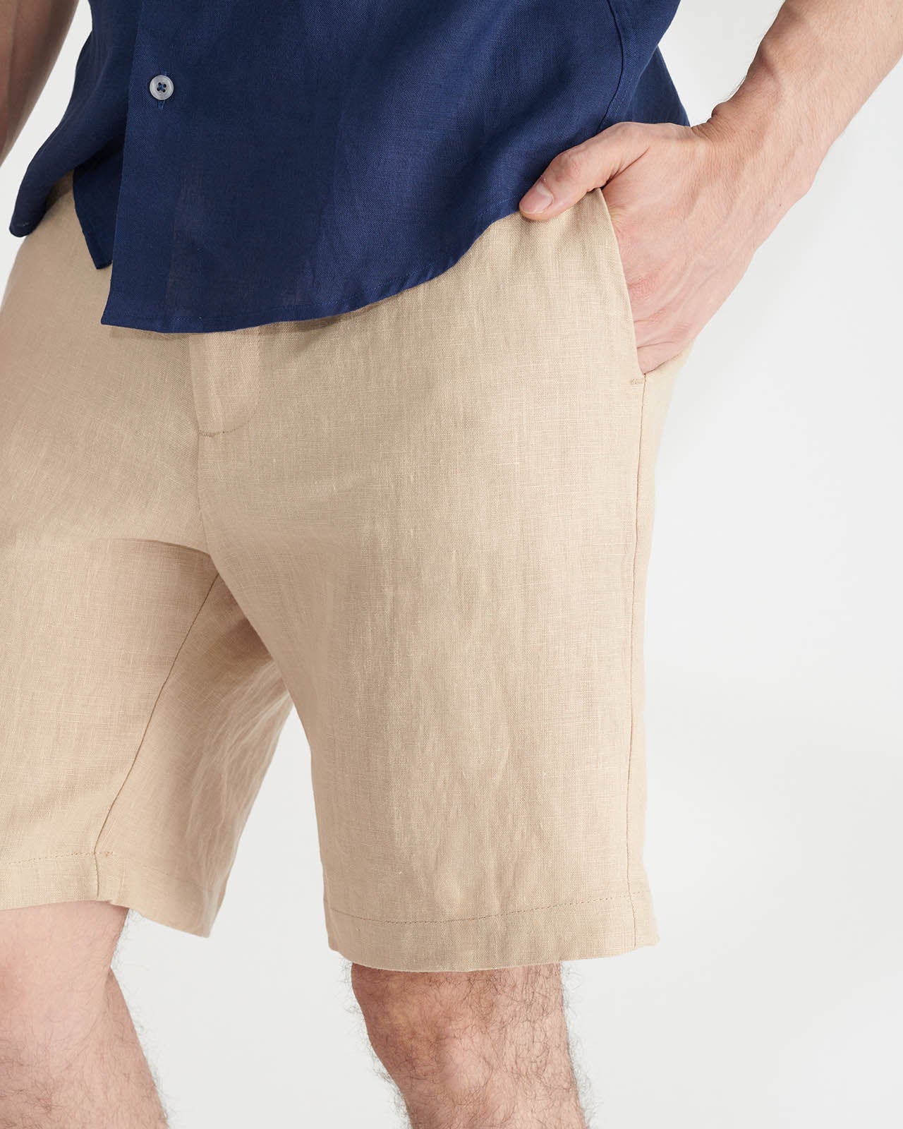 Bermudas de lino con bolsillos, corte regular y color arena, es una prenda versátil y atemporal que no puede faltar en tu armario. Su tejido natural y su corte clásico la hacen ideal para los días cálidos y para crear looks tanto casuales como más arreglados