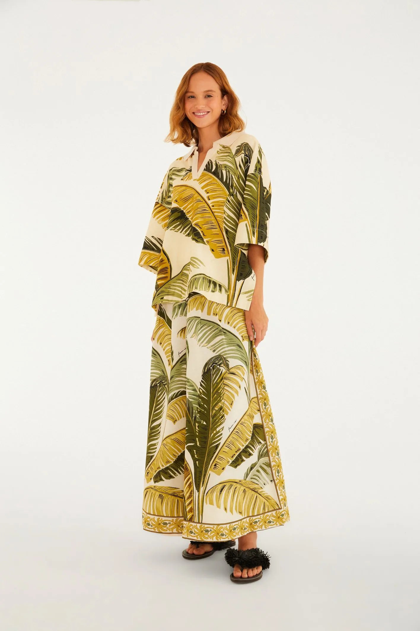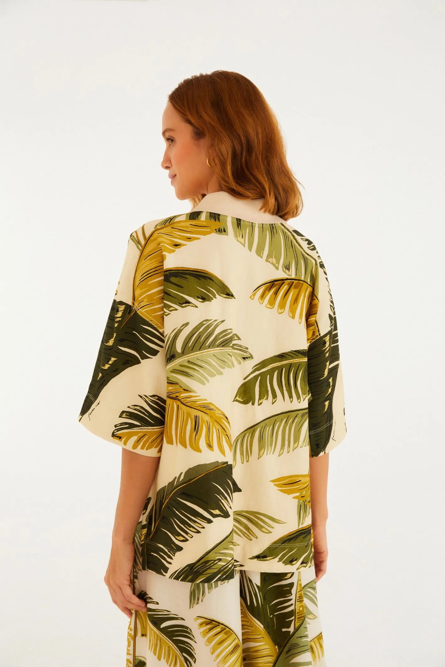 Blusa polo estampada Trancoso. Con un corte moderno y mangas anchas, es ideal para ocasiones informales, ofreciendo comodidad y estilo. El tejido es ligero y el cuello polo con botones discretos le da un toque especial. Perfecta para una salida relajada o una cita.