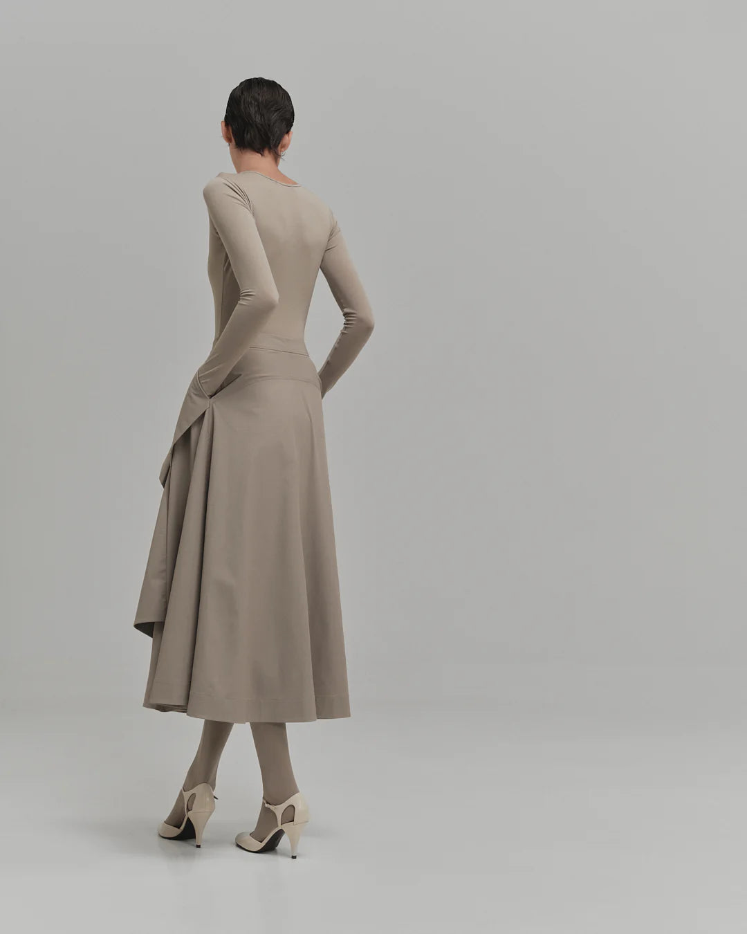 El mono de punto Trazo se ajusta como una segunda piel con una silueta limpia y minimalista que se adapta a la perfección a tus movimientos. Con mangas largas y puños sutilmente fruncidos, es la prenda básica perfecta: llévala debajo de un traje o combínala con pantalones llamativos para un look elegante y moderno.