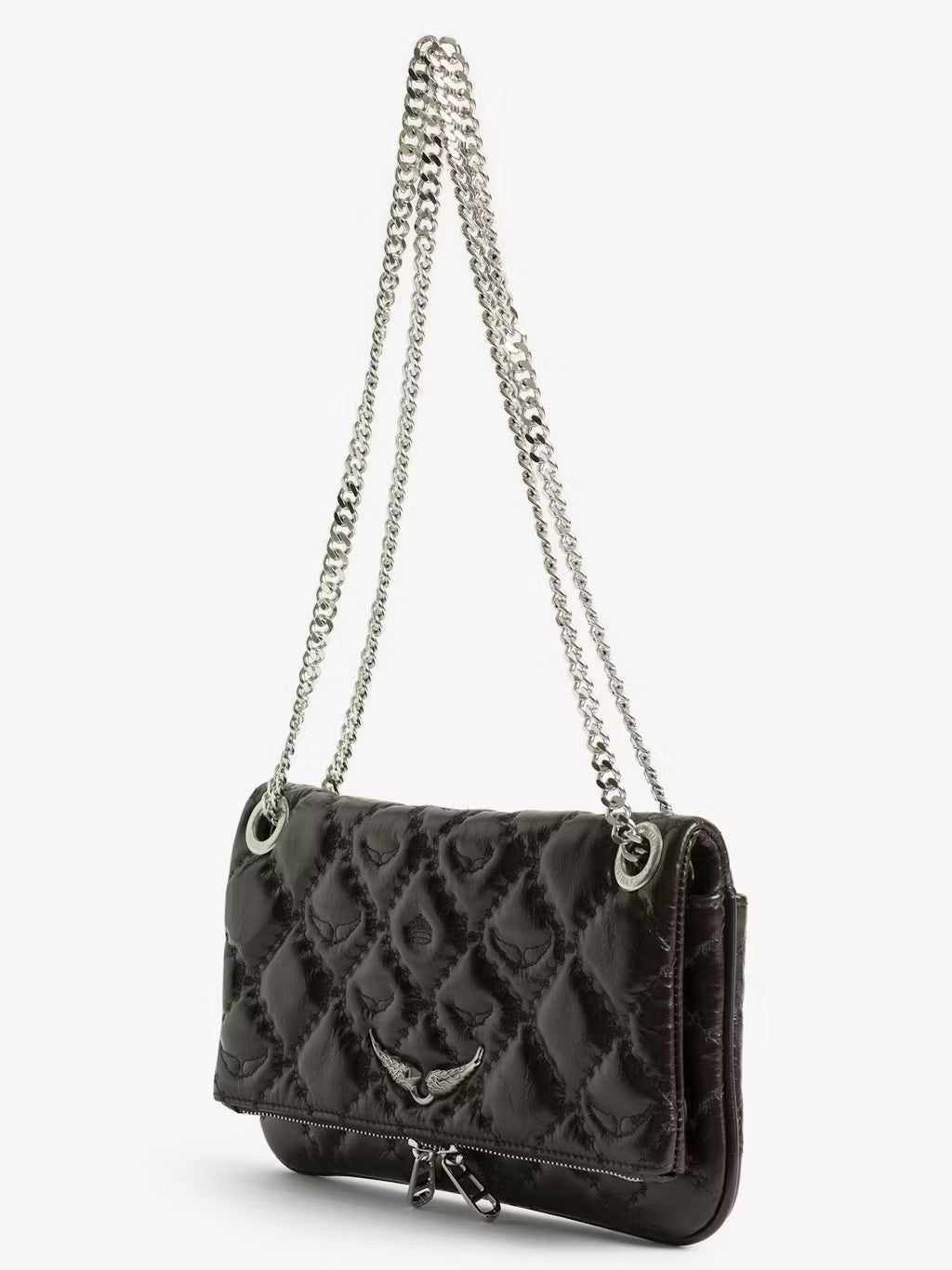 Bolso de mano de piel efecto vintage acolchado con cadena metálica deslizante y alas distintivas.