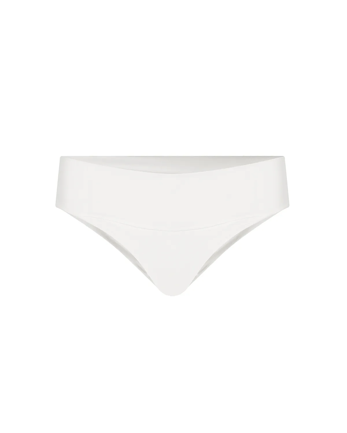 Un clásico bikini viene descaderado en nuestra clásica microfibra con banda ancha bajo la cintura.