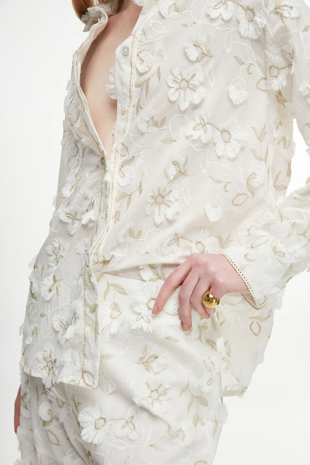 La camisa Fiora es una prenda que evoca pura delicadeza, perfecta para quienes buscan un equilibrio entre frescura y sofisticación. Su diseño de manga larga con botones frontales y un corte ligeramente holgado ofrece una silueta fluida y cómoda, mientras que los detalles bordados añaden un toque de lujo sutil. Con un ajuste natural y relajado, la camisa Fiora destaca por su versatilidad, lo que la hace perfecta para cualquier ocasión informal o evento al aire libre