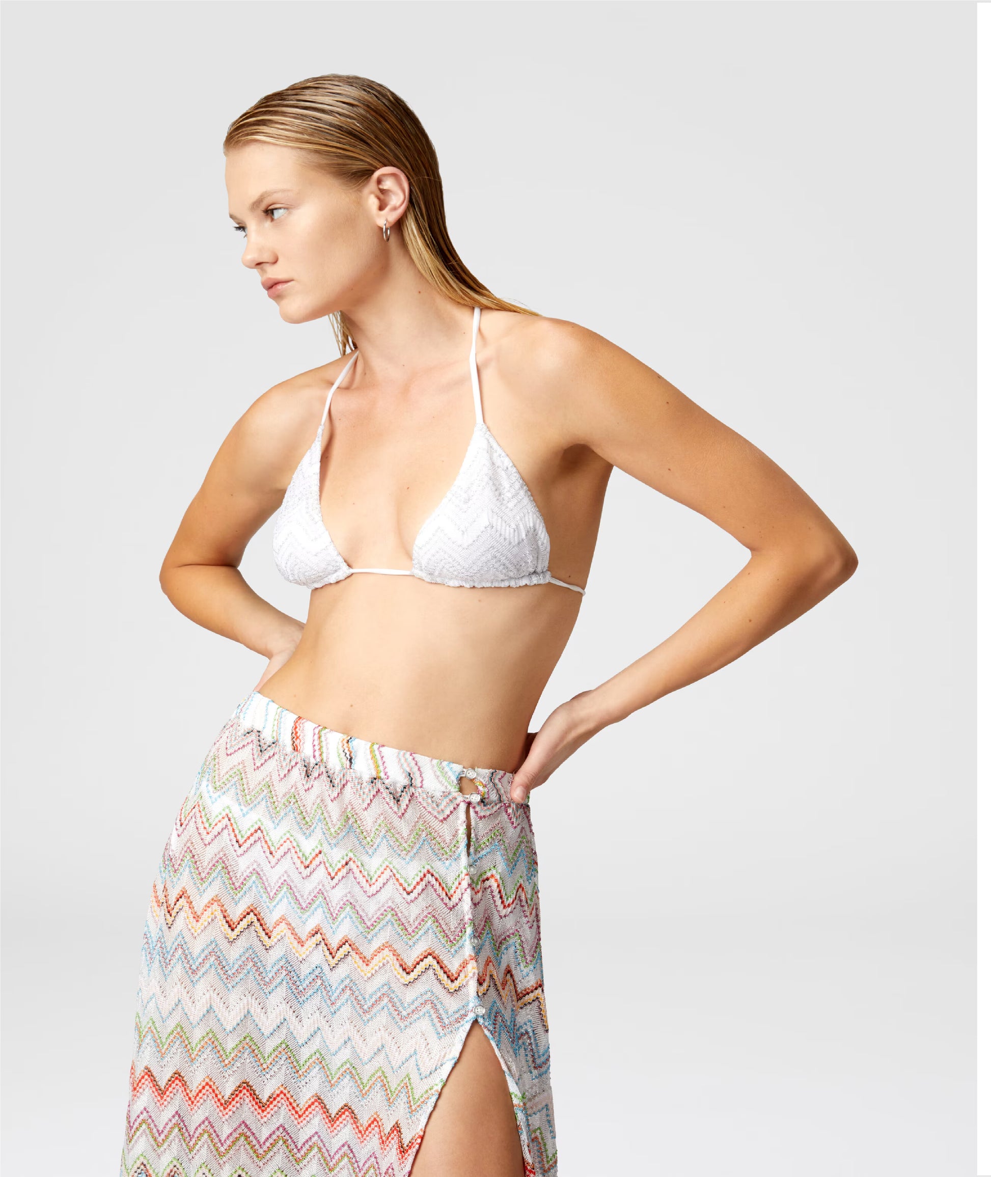 Marca emblema en la categoría del tejido de punto, creada por una pareja que buscaron inventar todo un universo. Fundada en medio de una época bohemia, rebelde y controversial; Missoni es el perfecto para el espíritu libre. Fueron pioneros en el naked look (look desnudo) que traía la feminidad de la mujer a otro nivel en ese momento de la historia. Su reconocido estampado en Zigzag fue introducido en 1962.