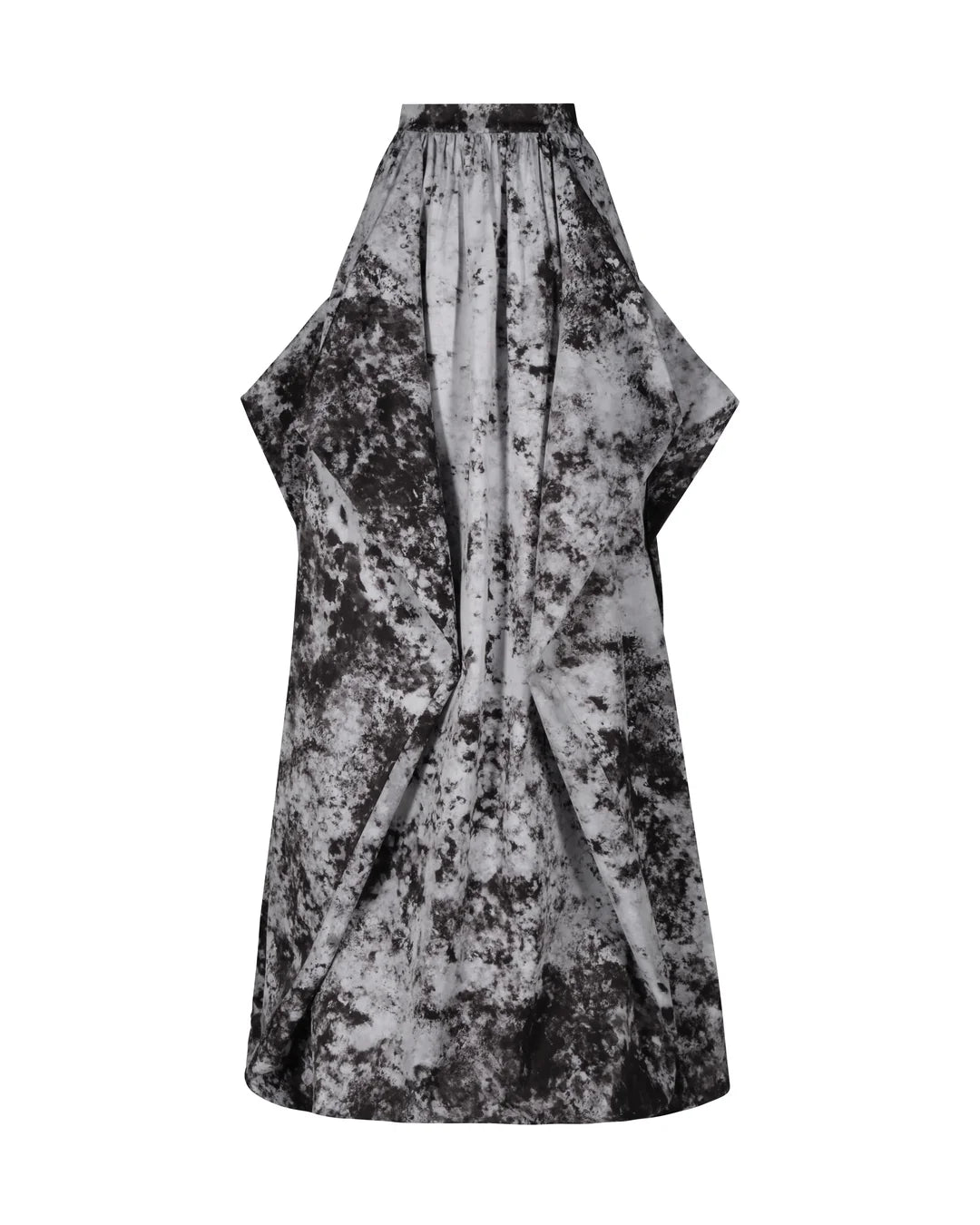 La falda maxi «Estepa» presenta un drapeado arquitectónico, con pliegues precisos que crean una silueta escultural y voluminosa. Su fluida estructura contrasta con la textura gráfica de la tela, dando como resultado una prenda impactante que fusiona movimiento, arte y elegancia moderna.