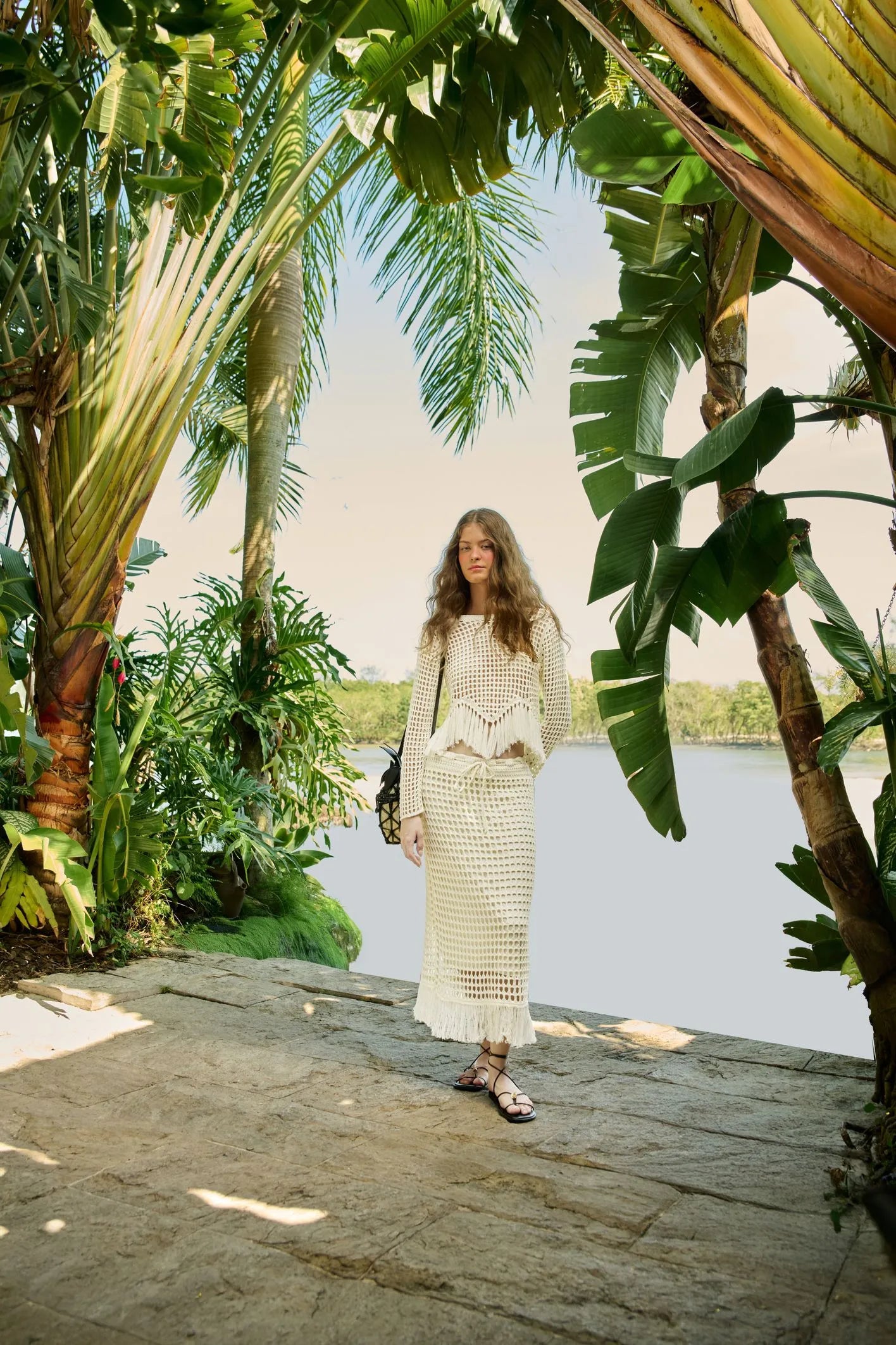 Falda midi de punto. Confeccionada en punto ligero y suave al tacto, presenta una cintura alta con cintura ajustable para mayor comodidad. Su diseño fluido permite una gran libertad de movimiento, mientras que el bajo original realza su encanto. Ideal para ocasiones informales o eventos especiales.