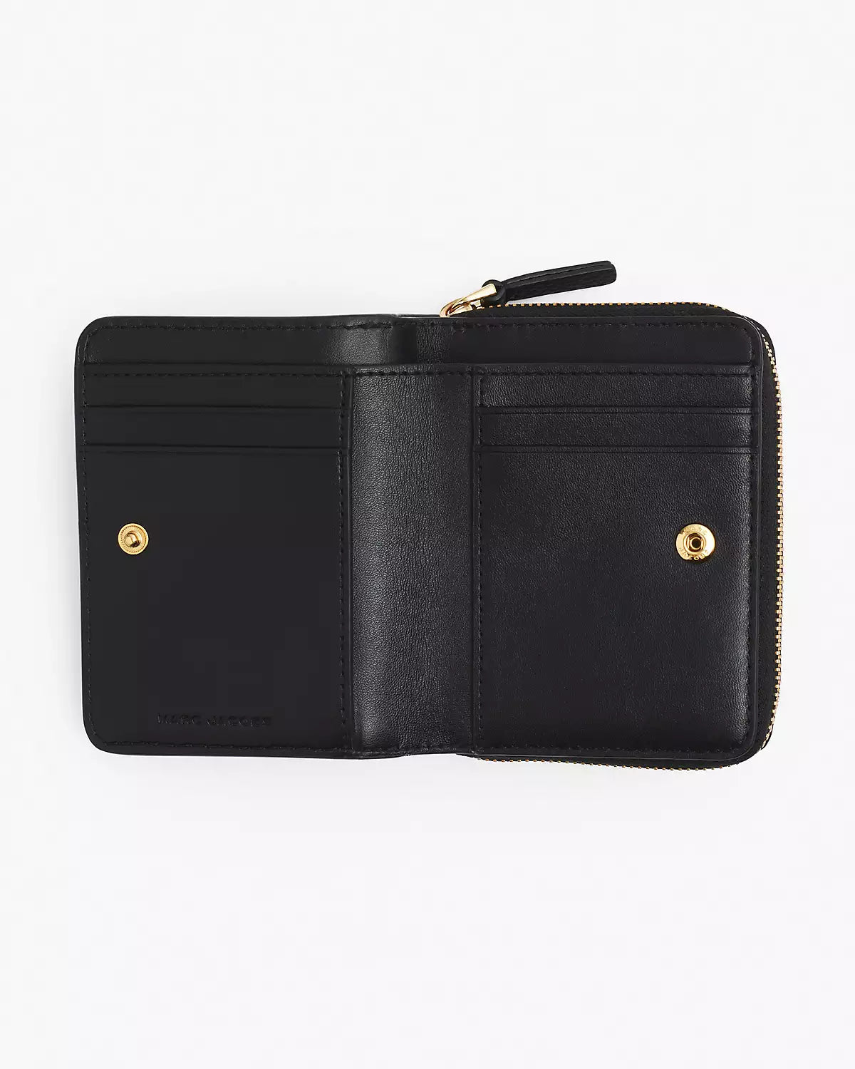 ¿Te suena? Esta minicartera compacta luce la misma marca llamativa que nuestro bolso tote más vendido. Con cierre a presión, incluye cuatro ranuras para tarjetas, un compartimento para billetes, dos bolsillos interiores, un monedero y dos bolsillos exteriores. Para un look Marc perfecto, completa el conjunto con uno de nuestros bolsos de piel exclusivos.