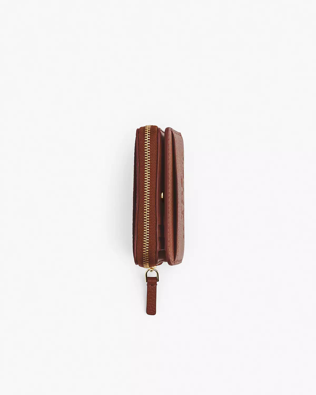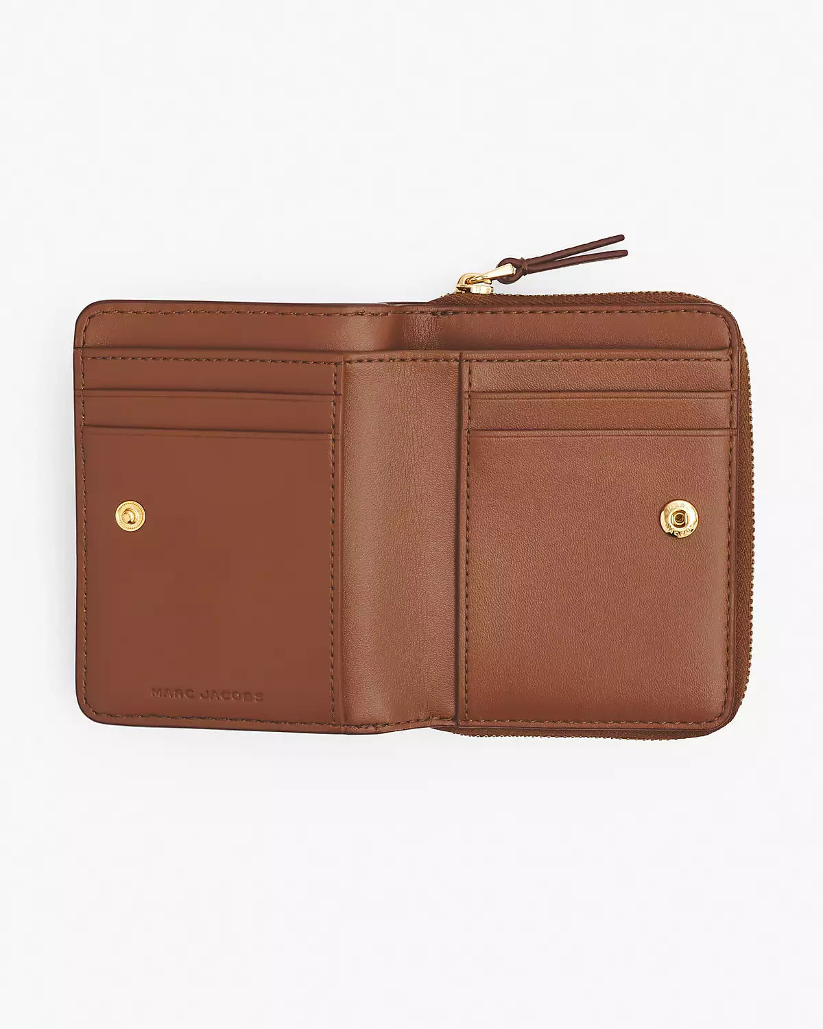 ¿Te suena? Esta minicartera compacta luce la misma marca llamativa que nuestro bolso tote más vendido. Con cierre a presión, incluye cuatro ranuras para tarjetas, un compartimento para billetes, dos bolsillos interiores, un monedero y dos bolsillos exteriores. Para un look Marc perfecto, completa el conjunto con uno de nuestros bolsos de piel exclusivos.