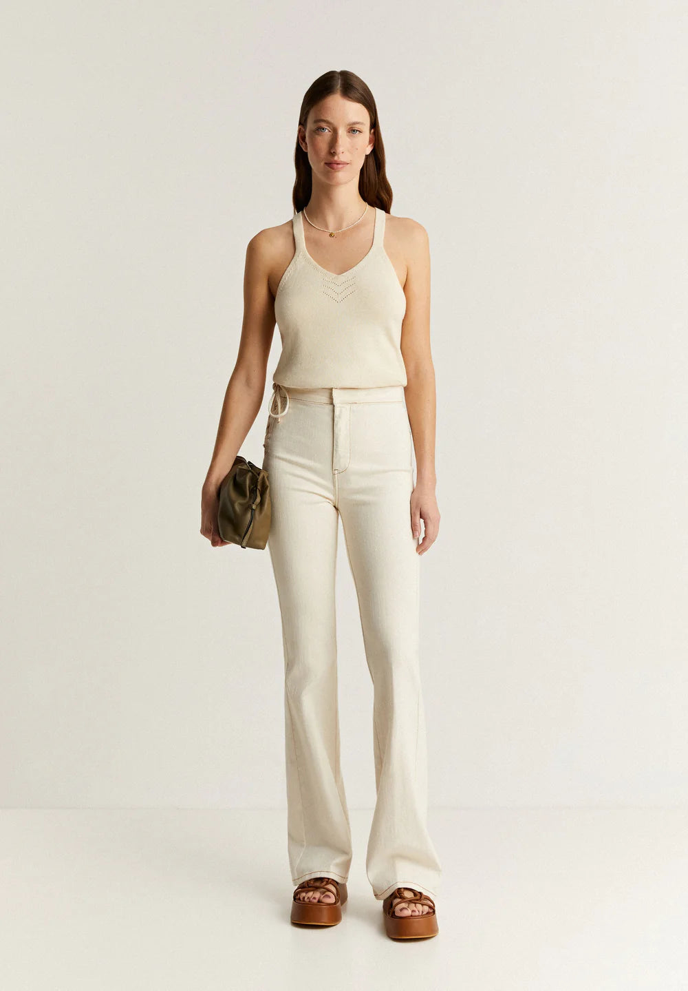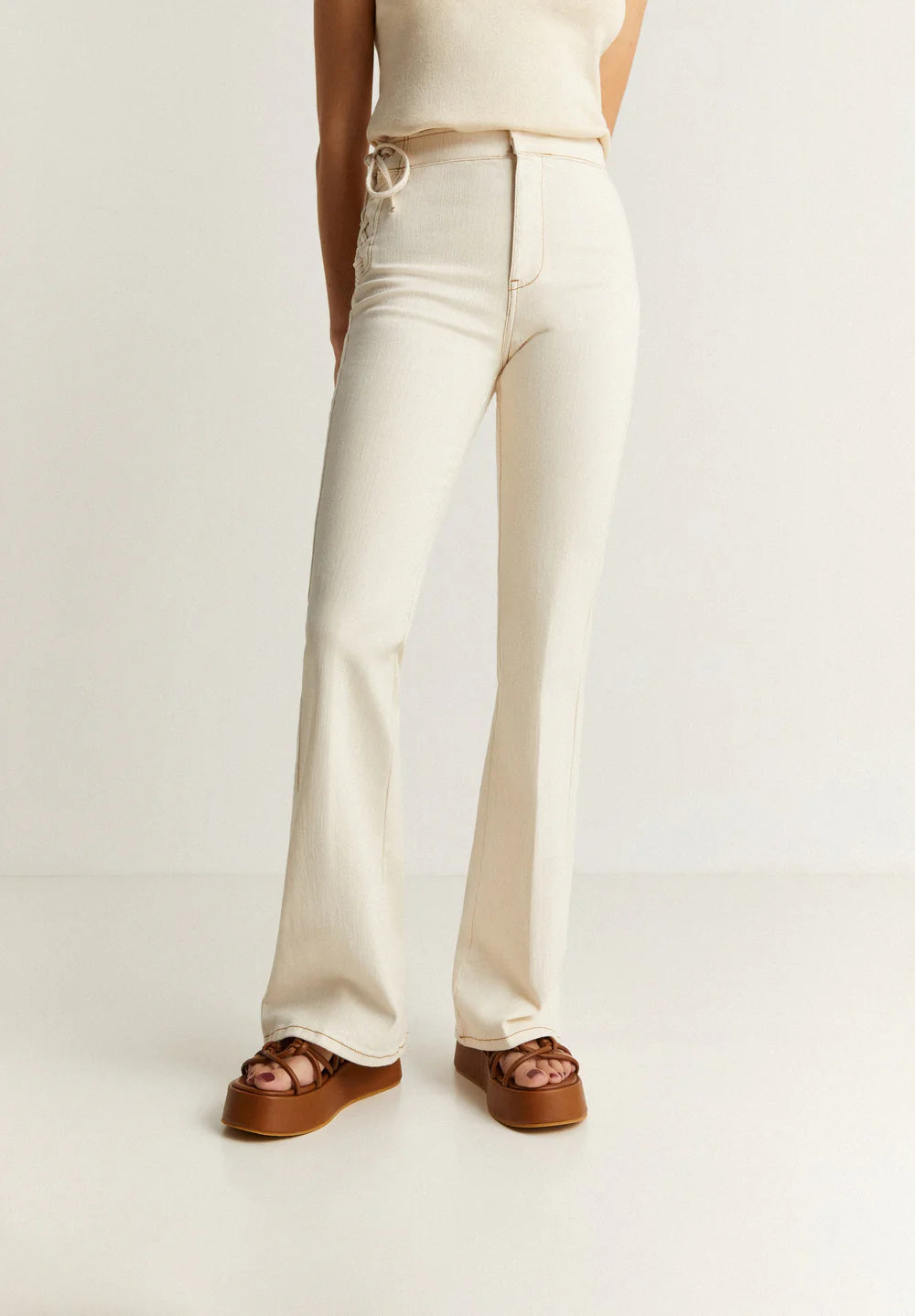 Jeans con detalle de cordón en lateral. Confeccionados en 100% Algodón. Corte Bootcut. Cierre con cremallera y corchete. Bolsillo laterales de vivo. Bolsillos traseros de parche.