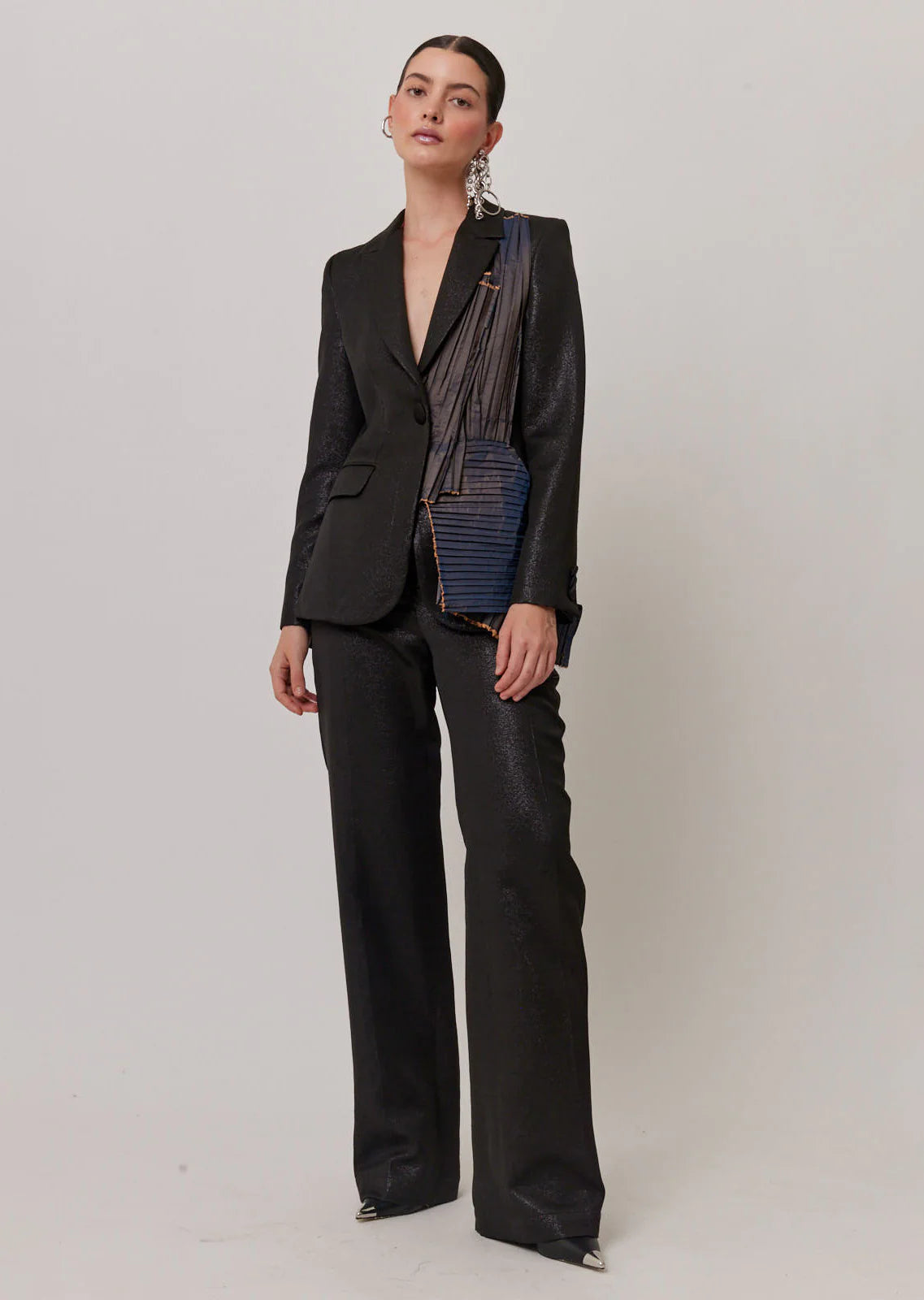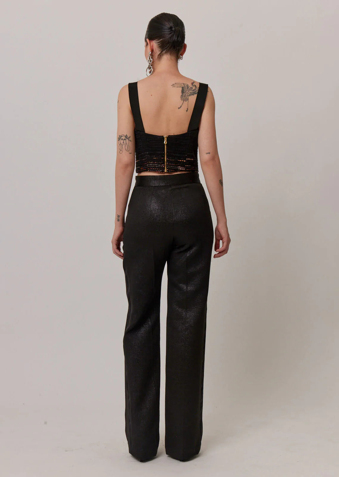 Pantalón clásico de cintura alta con paneles laterales de satén.