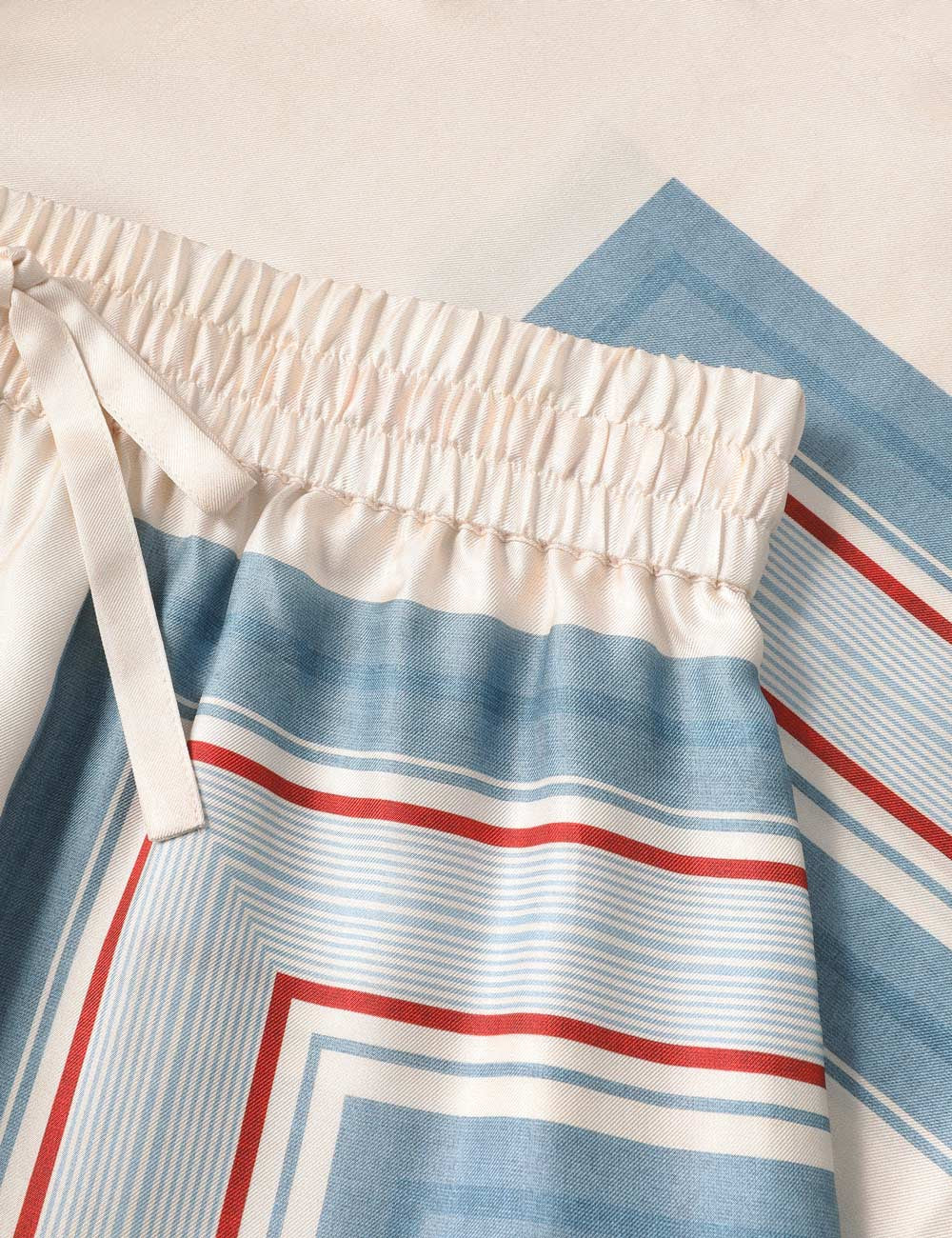 Pantalón de seda con cintura elástica y bolsillos laterales. Talle medio. Cordón ajustable para atar.Bolsillos funcionales. Dobladillo ancho.