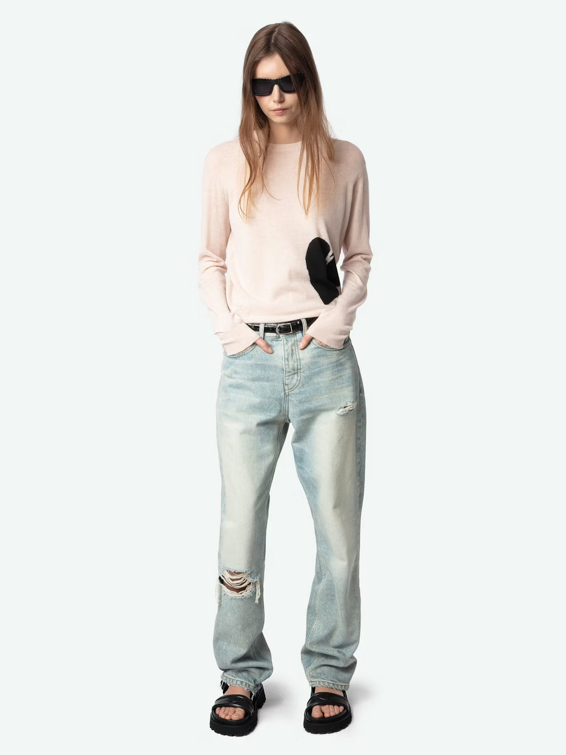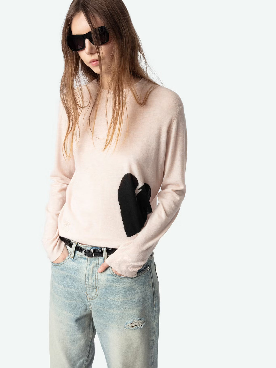 Suéter de cachemira 100 % ligera Motivo de corazón en contraste en la parte inferior. Cuello redondo. Mangas largas, bordes acanalados y firma ZV. La cachemira ligera, cálida por naturaleza, es más ligera y delicada que la cachemira clásica. Está tejida de forma más fina, lo que la convierte en una pieza excepcional.