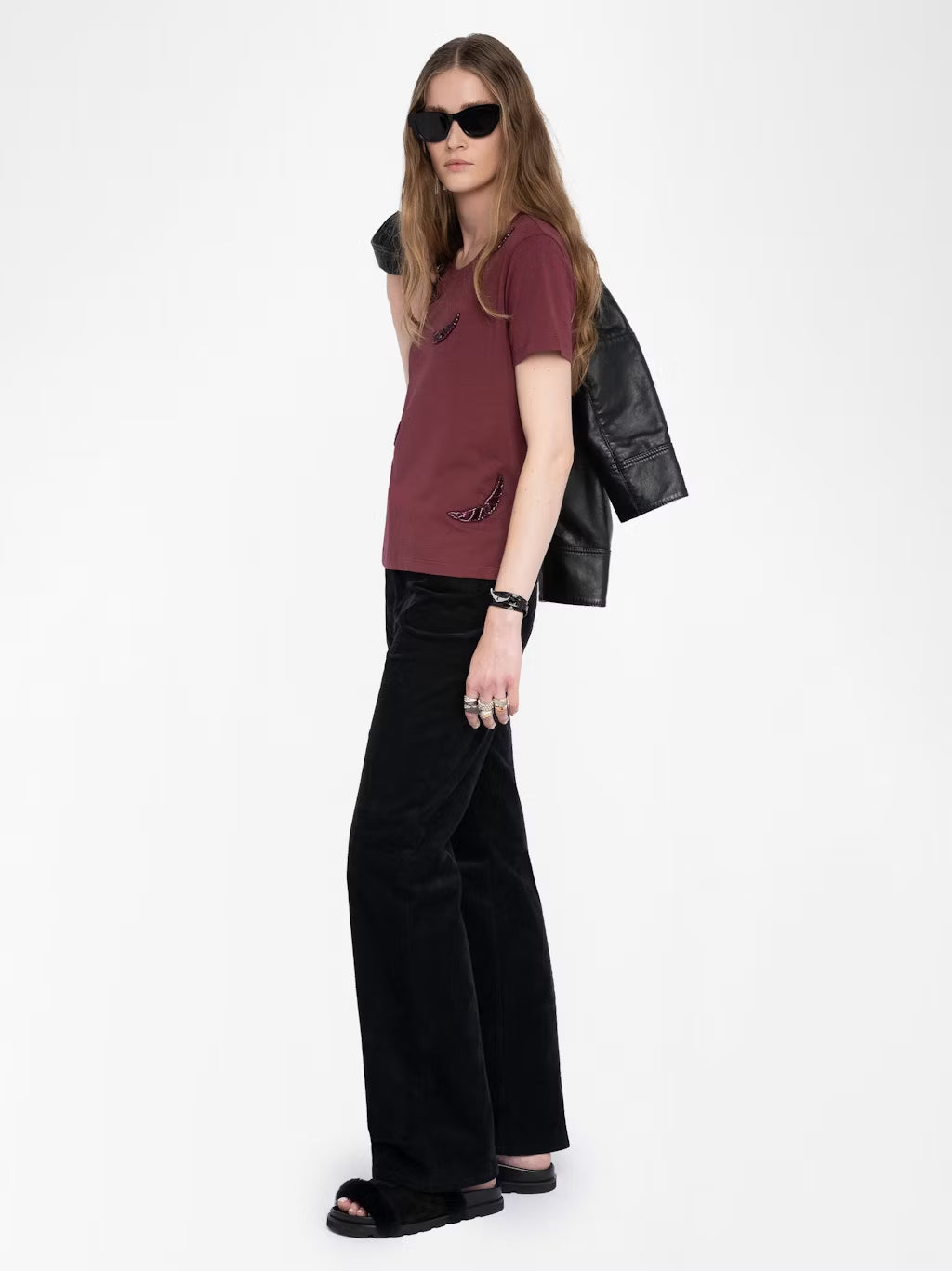 T-shirt de manga corta con cuello redondo y bordados de alas.