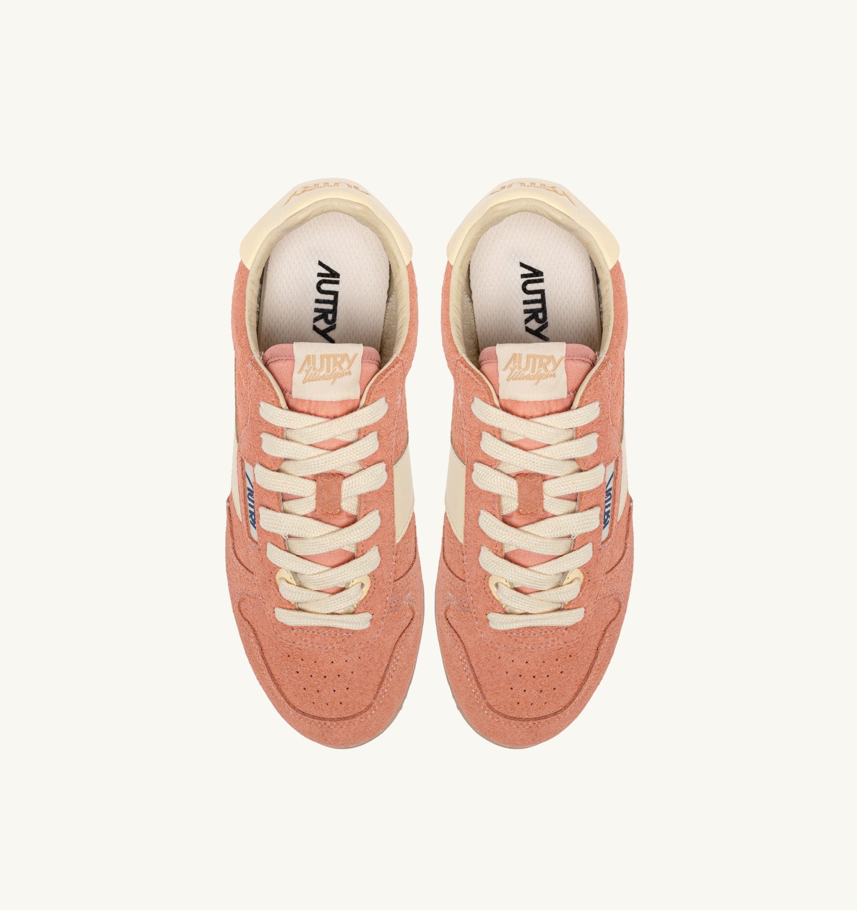 Autry Windspin es el nuevo icono de Autry que fusiona el espíritu del sueño americano con un toque italiano. El Windspin, confeccionado en suave ante de efecto usado, presenta una silueta cónica. Su perfil plano y dinámico encarna la característica mezcla de encanto vintage y modernidad de Autry. La suela de goma ultraplana garantiza un agarre excelente en todas las superficies urbanas.